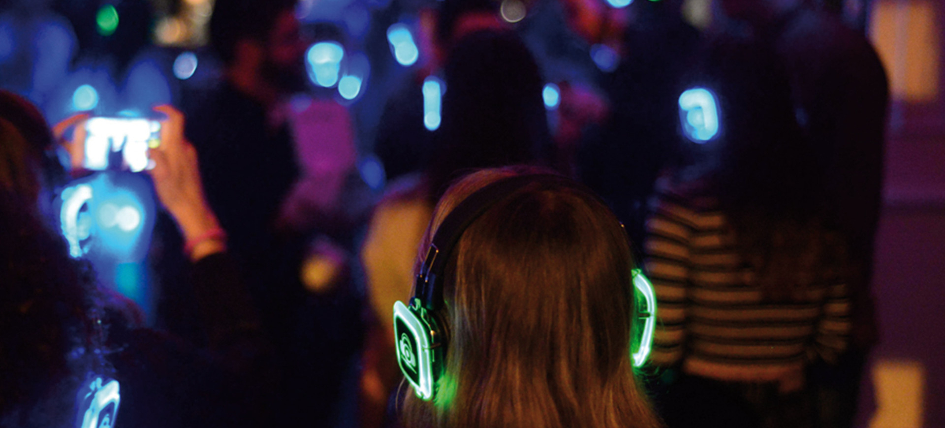 - Un dancefloor silencieux et interactif : chaque participant choisit son ambiance musicale parmi plusieurs canaux disponibles.